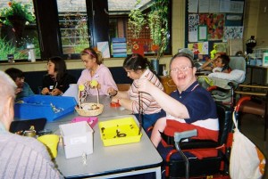 The young people were split into two groups working from 1 until 7pm each day, rotating between the two main activities. The indoor group worked alongside regular users of the centre for the first session, interacting and building relationships. In the second session they prepared for an afternoon tea on the Thursday, creating invitations for local residents from the local housing association houses, planning shopping and baking.