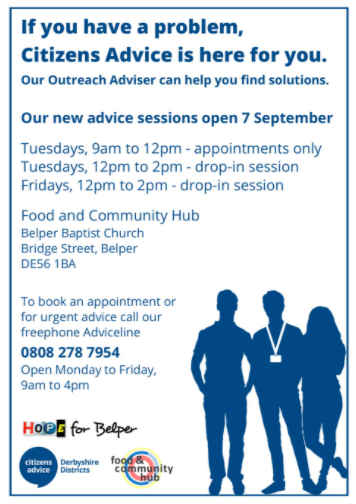 Derbyshire Dales Citizens Advice now operate appointments and drop-in clinics at the Hub: